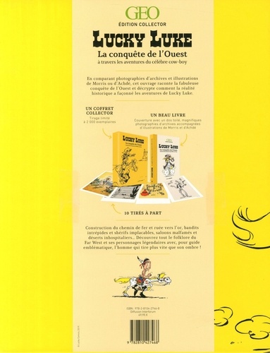 En comparant photographies d'archives et illustrations de Morris ou d'Achdé, cet ouvrage raconte la fabuleuse conquête de l'Ouest et décrypte comment la réalité historique a façonné les aventures de Lucky Luke. Un coffret collector : tirage à 2000 exemplaires. Un beau livre : couverture avec un dos toilé, magnifiques photographies d'archives accompagnées d'illustration de Morris et d'Achdé. 10 tirés à part : construction du chemin de fer et ruée vers l'or, bandits intrépides et shérifs implacables, saloons malfamés et déserts inhospitaliers... Découvrez tout le folklore du Far West et ses personnages légendaires avec, pour guide emblématique, l'homme qui tire plus vite que son ombre !