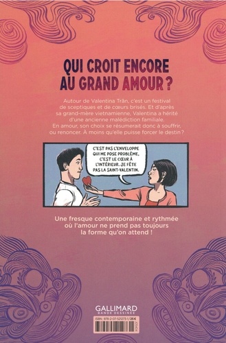 Une fresque contemporaine et rythmée où l'amour ne prend pas toujours la forme qu'on attend ! Qui croît encore au grand amour ? Autour de Valentina Tran, c'est un festival de sceptiques et de coeurs brisés. Et d'après sa grand-mère vietnamienne, Valentina a hérité d'une ancienne malédiction familiale. En amour, son choix se résumerait donc à souffrir, ou renoncer. A moins qu'elle puisse forcer le destin ?