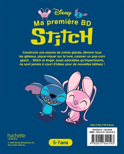 La première bande dessinée Stitch pour les lecteurs débutants (5-7 ans), composée de mini histoires inédites et hilarantes dans lesquelles le héros bleu invente de nouvelles bêtises ! - Une aventure par page centrée sur Stitch, accompagné de son amoureuse Angel, de sa meilleure amie Lilo, et aussi de Nani, David, Jumba et Pikly ! - Des textes courts, rythmés, et toujours aussi impertinents et drôles. - Adapté aux lecteurs débutants, de 5 à 7 ans. Le résumé : Construire une piscine de crème glacée, dévorer tous les gâteaux, pique-niquer sur la lune, cuisiner un pop-corn géant... Stitch et Angel, aussi adorables qu'impertinents, ne sont jamais à court d'idée pour de nouvelles bêtises !