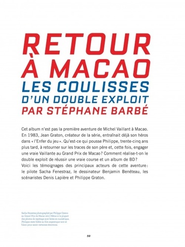 "Vaillant : la ruine et la prison", titrent les journaux. Terrible réalité pour Michel Vaillant, incarcéré pour son rôle suspect lors de l'accident qui a coûté la vie à son frère. Avec le soutien de ses proches, il décide de passer à l'offensive : réconcilier le clan Vaillant après la mort de Jean-Pierre, redonner un avenir ambitieux à son écurie et vaincre Ethan Dasz afin de récupérer l'entreprise familiale. Sorti de prison, c'est à Macao que Michel Vaillant va poser les jalons du renouveau du clan, malgré la détermination absolue de Dasz à les anéantir...