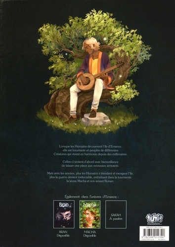 Sur l'île d'Errance, les Créatures sont des êtres magiques capables de passer de l'état d'animal à celui d'humain. Macha, une femme-renard, et Ronan, un homme-cerf, vivent au jour le jour, de chasse, de pêche, d'amour et d'eau fraiche. Jusqu'au jour où ils rencontrent des Sylvains agressés par un groupe d'humains, ces nouveaux venus qui saccagent la forêt et qui ne tuent pas que pour se nourrir. Macha et Ronan prennent alors conscience des tensions grandissantes entre Humains et Créatures. L'harmonie d'Errance est sur le point d'être brisée...Quelques années avant Bran, replongez au cœur de l'univers magique et féérique d'Errance et découvrez le passé de Macha et les origines de sa quête. Grimaldi signe un récit de fantasy inspiré des contes et légendes celtiques, servant de reflet à des questionnements humanistes, toujours aussi magnifiquement représenté par Maike Plenzke, dessinatrice allemande bourrée de talent.