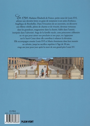 En 1790, Madame Elisabeth de France, petite soeur de Louis XVI, adresse une dernière lettre en guise de testament à son amie d'enfance, Angélique de Bombelles. Dans l'évocation de ses souvenirs, on découvre une fillette rebelle, pleine de charme et de vivacité, devenue vertueuse dans les grandeurs, magnanime dans la charité, fidèle dans l'amitié, intrépide dans l'adversité. Ange de la famille royale, cette princesse célibataire ne vit que pour aimer son prochain et son pays, en s'appuyant sur le Sacré-Coeur dont elle contribue à relancer la dévotion. Elle accompagne ensuite Louis XVI et Marie-Antoinette dans leur montée au calvaire, jusqu'au sacrifice suprême à l'âge de 30 ans, vingt ans jour pour jour après la mort de son grand-père Louis XV.
