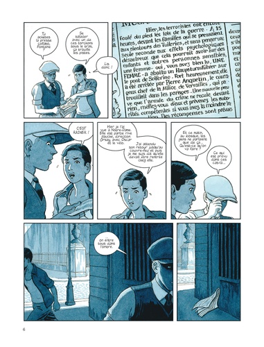1944. Madeleine - résistante, nom de code " Rainer " - est arrêtée après avoir abattu un officier nazi. Un crime " terroriste ", qui la condamne aux terribles interrogatoires des Brigades spéciales, la police de Vichy. Et plus particulièrement à ceux du commissaire Fernand David - " David les Mains Rouges ", traqueur d'" ennemis intérieurs " tels que les FTP-MOI du groupe Manouchian. Un préambule aux interrogatoires nazis, puis au terrifiant quotidien de la prison de Fresnes, avec pour seule échappatoire la perspective d'être fusillée... Torturée, encore et encore, Madeleine va-t-elle tenir, alors qu'à Paris bruissent des rumeurs sur la Libération ? " Madeleine, résistante ", ou l'authentique destin de Madeleine Riffaud, qui revient cette fois avec une précision implacable sur les tortures qu'elle a endurées dans les geôles vichystes et nazies, avec au bout de supplice, enfin : la victoire. Mettre en scène la torture sans volonté de choquer mais aussi sans l'amoindrir. Voici le défi relevé avec un brio, de manière poignante, par Morvan et Bertail avec ce troisième tome.
