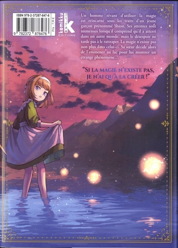 Si la magie n'existe pas, je n'ai qu'à la créer ! Un homme rêvant d'utiliser la magie est réincarné sous les traits d'un jeune garçon prénommé Shion. Ses attentes sont immenses lorsqu'il comprend qu'il a atterri dans un autre monde, mais le désespoir ne tarde pas à le rattraper. La magie n'existe pas non plus dans celui-ci. Sa soeur décide alors de l'emmener au lac pour lui montrer un étrange phénomène...