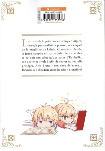 Le palais de la princesse est attaqué ! Algard, aveuglé par son désir de pouvoir, s'est emparé de la magilithe de Lainie. Gravement blessée, la jeune vampire est sur le point de succomber et ne doit son salut qu'aux soins d'Euphyllia, son ancienne rivale ! Afin de sauver sa nouvelle protégée, Anis brandit son épée de mana... Parviendra-t-elle à faire entendre raison à son frère ?