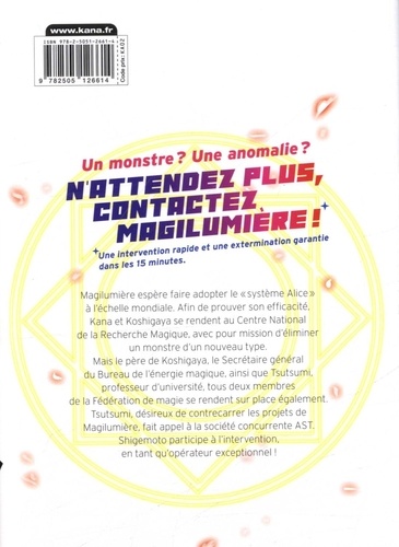 Magilumière espère faire adopter le "système Alice" à l'échelle mondiale. Afin de prouver son efficacité, Kana et Koshigaya se rendent au Centre National de la Recherche Magique, avec pour mission d'éliminer un monstre d'un nouveau type. Mais le père de Koshigaya, le Secrétaire général du Bureau de l'énergie magique, ainsi que Tsutsumi, professeur d'université, tous deux membres de la Fédération de magie se rendent sur place également. Tsutsumi, désireux de contrecarrer les projets de Magilumière, fait appel à la société concurrente AST.