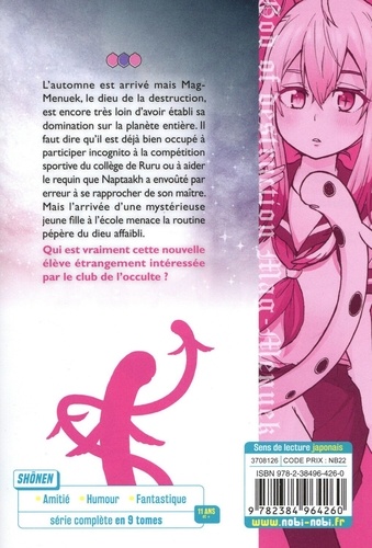 L'automne est arrivé mais Mag-Menuek, le dieu de la destruction, est encore très loin d'avoir établi sa domination sur la planète entière. Il faut dire qu'il est déjà bien occupé à participer incognito à la compétition sportive du collège de Ruru ou à aider le requin que Naptaakh a envoûté par erreur à se rapprocher de son maître. Mais l'arrivée d'une mystérieuse jeune fille à l'école menace la routine pépère du dieu affaibli. Qui est vraiment cette nouvelle élève étrangement intéressée par le club de l'occulte ?
