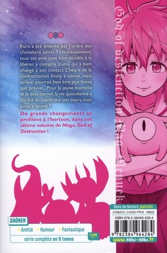 Ruru a été enlevée par l'ordre des chevaliers saints ! Heureusement, tous ses amis sont décidés à la libérer, y compris Izuma, qui a bien changé à son contact. L'heure de la confrontation finale a sonné ! Mais celle-ci pourrait bien être plus brève que prévu, car pour la jeune mortelle et le dieu éternel, la vie quotidienne a tôt fait de reprendre son cours... De grands changements se profilent à l'horizon, dans cet ultime volume de Magu, God of Destruction !
