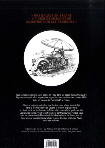 Vous pensez que Litteul Kévin est né en 1993 dans les pages de Fluide Glacial ? Figurez-vous qu'il a fait sa première apparition au tout début des années 1990 dans un épisode de Mammouth & Piston. Même si ce jeune motard et tout l'univers des bikers étaient déjà dans la première série de Coyote, le ton est ici plus adulte et plus tourné sur les femmes et la franche camaraderie que la famille. Ceci dit, les belles cylindrées et l'humour sont toujours au rendez-vous dans les aventures de Mammouth, le biker barbu, et de Piston, son rat. Pour un peu, on croirait suivre les aventure d'un des oncles de Kévin dans ses ballades. Cette intégrale contient les 3 tomes de la série Mammouth & Piston ainsi qu'un dossier à ne pas mettre dans toutes les mains.