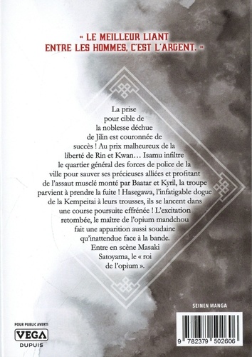 Alors que notre équipe de choc réussit enfin à retourner sur le lieu de production d'opium, Masaki Satoyama alias le " roi de l'opium " rend visite à Isamu pour parler affaires. Après un échange étrangement pacifique, Isamu et ses camarades reprennent la route, pour aller vendre leur opium vers d'autres horizons. De son côté, Haotian se rend dans la ville haute de Jiling pour retourner auprès de Shenmei. Mais lorsqu'il la retrouve enfin, il s'aperçoit que cette dernière est sous l'emprise de la drogue qu'il a lui-même vendue. Pendant ce temps, un mystérieux agent est missionné pour découvrir l'identité du créateur de l'opium X... Mais il n'est pas le seul à vouloir retrouver Isamu, car certains membres de la Qing Bang préparent leur revanche...