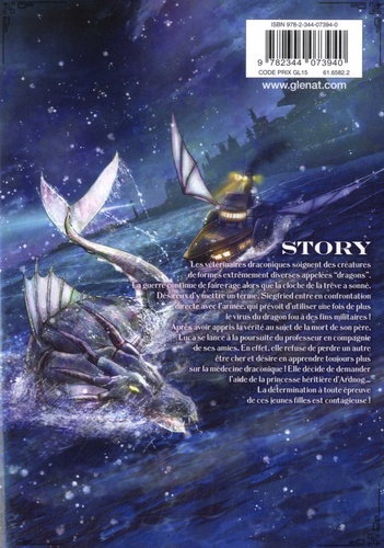 Les vétérinaires draconiques soignent des créatures de formes extrêmement diverses appelées "dragons". La guerre continue de faire rage alors que la cloche de la trêve a sonné. Désireux d'y mettre un terme, Siegfried entre en confrontation directe avec l'armée, qui prévoit d'utiliser une fois de plus le virus du dragon fou à des fins militaires ! Après avoir appris la vérité au sujet de la mort de son père, Luca se lance à la poursuite du professeur en compagnie de ses amies. En effet, elle refuse de perdre un autre être cher et désire en apprendre toujours plus sur la médecine draconique ! Elle décide de demander l'aide de la princesse héritière d'Ardnog... La détermination à toute épreuve de ces jeunes filles est contagieuse !