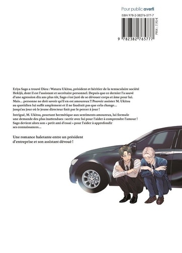 Eriya Sago a trouvé Dieu : Wataru Ukitsu, président et héritier de la tentaculaire société Hekijô, dont il est l'assistant et secrétaire personnel. Depuis que ce dernier l'a sauvé d'une agression dix ans plus tôt, Sago s'est juré de se dévouer corps et âme pour lui. Mais... personne ne doit savoir qu'il en est amoureux !! Pouvoir assister M. Ukitsu au quotidien lui suffit amplement et il ne faudrait pas que cela change... jusqu'au jour où le jeune directeur finit par le percer à jour ! Intrigué, M. Ukitsu, pourtant hermétique aux sentiments amoureux, lui formule une demande des plus inattendues : sortir avec lui pour l'aider à comprendre l'amour ! Sago devient alors son " petit ami d'essai " pour l'aider à approfondir ses connaissances... Une romance haletante entre un président d'entreprise et son assistant dévoué !