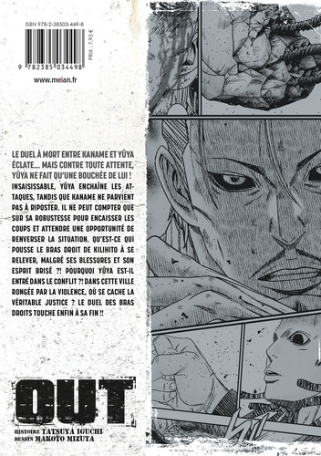 Le duel à mort entre Kaname et Yûya éclate... mais contre toute attente, Yûya ne fait qu'une bouchée de lui ! Insaisissable, Yûya enchaîne les attaques, tandis que Kaname ne parvient pas à riposter. Il ne peut compter que sur sa robustesse pour encaisser les coups et attendre une opportunité de renverser la situation. Qu'est-ce qui pousse le bras droit de Kilihito à se relever, malgré ses blessures et son esprit brisé ? ! Pourquoi Yûya est-il entré dans le conflit ? ! Dans cette ville rongée par la violence, où se cache la véritable justice ? Le duel des bras droits touche enfin à sa fin !!