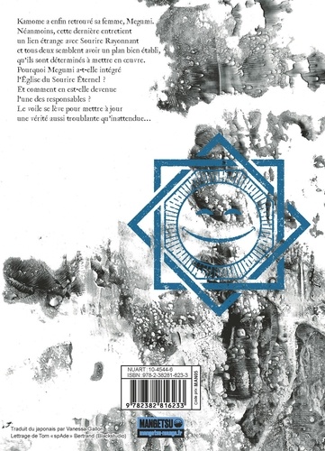 Kamome a enfin retrouvé sa femme, Megumi. Néanmoins, cette dernière entretient un lien étrange avec Sourire Rayonnant et tous deux semblent avoir un plan bien établi, qu'ils sont déterminés à mettre en oeuvre. Pourquoi Megumi a-t-elle intégré l'Eglise du Sourire Eternel ? Et comment en est-elle devenue l'une des responsables ? Peu à peu, le voile se lève pour dévoiler une vérité aussi troublante qu'inattendue. "Un thriller psychologique captivant". Francetvinfo. fr "Le mangaka qui signe ici sa première oeuvre, conduit son train avec assurance vers un climax bien vicelard qui augure d'une suite riche en promesses tordues". Atom "Un suspense totalement addictif". Le Point Pop