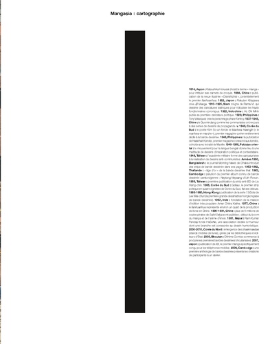 Plus de 100 ans de créativité dans la bande dessinée et l'animation asiatique commentée dans ce splendide ouvrage, unique en son genre. Des artistes originaires du Japon, de la Chine, de Taïwan, de la Corée du Sud comme de la Corée du Nord, de Thaïlande, de Malaisie, d'Indonésie, du Cambodge, du Sri Lanka, des Philippines, du Vietnam, de l'Inde, du Pakistan, et du Bangladesh sont réunis dans cet album qui présente tous les genres, toutes les thématiques et toutes les techniques asiatiques. Des repères chronologiques, des cartes, viennent compléter cette histoire de la bande dessinée asiatique et aident à bien comprendre l'évolution du manga et les différentes traditions dont il est issu. Paul Gravett, mondialement reconnu comme grand connaisseur du genre, explique clairement, avec de nombreux exemples à l'appui, l'évolution des interprétations des différents mythes et légendes que les auteurs de mangas ont repris pendant plus d'un siècle. Il revient sur la forte créativité qui a marqué la fin des années 40 (juste après la Seconde Guerre mondiale) avec l'émergence d'artistes comme Osamu Tezuka et son célèbre manga Astro Boy. Sa technique visuelle très dynamique a été par la suite maintes fois copiée. Il aborde aussi la partie plus adulte, plus obscure du manga, qui parle de sexualité sans tabou, qui critique le pouvoir politique et remet en question l'autorité en général. Illustré de centaines de planches inédites, cet ouvrage est indispensable à tous les lectures de mangas qui veulent en savoir plus sur les origines complexe d'un genre aujourd'hui plébisicité par les adolescents du monde entier.