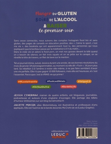 Sans cesse connectés, nous suivons des comptes Instagram food bio et sans gluten, des pages de conseils en éducation positive, des "J'aime le sport, c'est ma vie", des bookista qui ont apparemment tout lu, des personnes qui nous expliquent que le bonheur passe par la méditation à 5 h du matin... Dans la vraie vie on adore la food porn, on met nos gosses devant la télé quand on a besoin de silence, on fait trois squats et on se jette sur le canapé, on se réveille la tête de travers, un filet de bave sur le menton. Tel un journal intime, suivez Jessica durant une année, de ses bonnes résolutions du mois de janvier (#vieinstagrammable), au moment où elle dit "Fuck", 16 jours plus tard. Sa rébellion 2.0 l'amène à rester elle-même, à ne pas faire semblant d'avoir une vie parfaite. Elle n'a pas gagné 10 000 followers, mais elle est heureuse, et c'est l'essentiel. Parce que c'est la VRAIE vie qui prime !