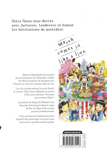 Akari et Hayashida rencontrent pour la première fois Shimada à la fête de l'été du quartier de Sangatsuchô. Chacun va vivre un tournant dans sa vie. Lors du combat estival du mois d'août, le tournoi Tôyô Open, Nikaidô se motive à bloc pour devenir "l'homme qui a vaincu Sôya"! Les pièces de shôgi de Nikaidô vont résonner directement dans le coeur de Rei, de Sdya et des autres joueurs professionnels. C'est une histoire chaleureuse dans laquelle des personnes vont peu à peu retrouver ce qu'elles avaient perdu.