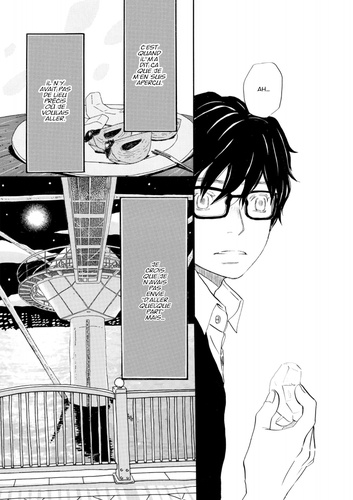 Kiriyama se pose des questions sur son attitude indécise par rapport au shôgi. Il retrouve des forces au contact de la famille Kawamoto et grâce au sourire de Hinata. Mais Kyôko, la soeur de sa famille d'adoption, fait son apparition... Une histoire chaleureuse dans laquelle des personnes vont peu à peu retrouver ce qu'elles avaient perdu.
