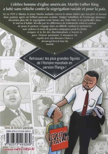 Célèbre homme d'église américain, Martin Luther King a lutté sans relâche contre la ségrégation raciale et pour la paix. Né en 1929 à Atlanta, le jeune Martin souhaite exercer le même métier que son père et devient donc pasteur après un brillant parcours scolaire. Malgré l'abolition de l'esclavage plusieurs décennies plus tôt, la ségrégation reste tenace aux Etats-Unis et en particulier dans le sud où il habite. Révolté par les différences de traitements selon la couleur de peau, le pasteur s'engage dans un difficile combat en prônant la non-violence et mène de grandes campagnes pour les droits civiques et la fin des discriminations à travers le pays. Orateur passionné, il marquera les esprits avec son discours I have a dream qui fera le tour du monde.
