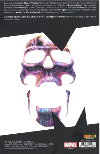 A l'occasion du Gala des Damnés, Spider-Man fait équipe avec Wolverine ! Obsédé par les visions qu'il a eues lorsqu'il combattait l'Hiver Noir, Thor enquête sur le passé de Thanos. Iron Man tente le tout pour le tout pour démanteler un réseau de trafiquants d'armes high-tech, au risque d'en sortir ruiné. Et les Avengers de tout le multivers s'organisent pour affronter Méphisto et ses Maîtres du Mal ! La fin d'une époque approche ! La série Iron Man touche à sa fin tandis que tout se met en place pour Avengers Assemble, la dernière saga de Jason Aaron sur les titres Avengers, qui commence le mois prochain. En plus, un long épisode scénarisé par les plus éminents auteurs Marvel rend hommage à Thanos, l'un des plus charismatiques vilains. Plus que jamais, MARVEL COMICS est le rendez-vous incontournable pour ceux qui veulent être au plus près de l'actualité des super-héros Marvel.
