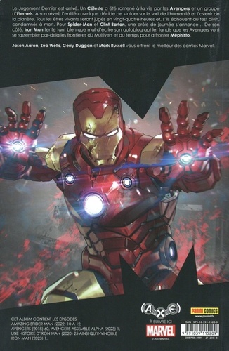 Nouveau départ pour Iron Man, qui n'est pas au mieux de sa forme. L'affrontement final entre les Avengers du multivers et les Maîtres du Mal de Méphisto commence, mais avant, les héros vont devoir affronter leurs homologues de la préhistoire. L'enjeu ? La réalité toute entière ! Spider-Man et Hawkeye sont pris dans la tourmente Judgment Day ! Et qui est le nouveau Super-Bouffon ? Ca bouge ce mois-ci dans l'anthologie préférée des fans de continuité ! Tout d'abord, Jed Mackay, le futur scénariste des Avengers (ce sera en novembre) se penche sur l'avenir de l'univers Marvel. Iron Man a droit à une nouvelle série scénarisée par Gerry Duggan (Deadpool, X-Men) et Jason Aaron signe sa dernière saga des Avengers. Entre cet évènement gigantesque (avec un épisode spécial illustré par Bryan Hitch) et plusieurs épisodes liés au fantastique crossover Judgment Day, ce numéro est un point d'entrée idéal !