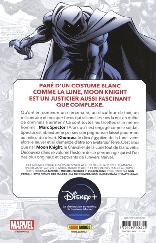 L'ancien mercenaire Marc Spector a été laissé pour mort et ressuscité par Khonshu, le dieu égyptien de la lune. Il est désormais Moon Knight et combat le crime malgré d'importants troubles psychologiques. Découvrez quatre de ses aventures. A l'occasion de la sortie de la série Moon Knight sur Disney+, et comme à chaque nouveau lancement sur la plateforme de streaming, nous vous proposons un recueil d'histoires indépendantes et accessibles pour apprendre à mieux connaître le personnage.