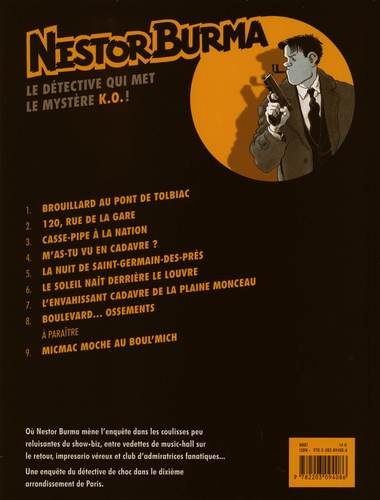 Où Nestor Burma mène l'enquête dans les coulisses peu reluisantes du show-biz, entre vedettes de music-hall sur le retour, impresario véreux et club d'admiratrices fanatiques... Une enquête du détective de choc dans le dixième arrondissement de Paris.
