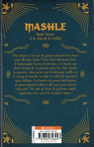 Orter, Rayne et le reste du groupe unissent leurs forces pour affronter Doom ! Mais l'aîné d'Innocent Zero, à l'intarissable réserve de puissance, n'a besoin que d'une fraction de ses pouvoirs pour leur faire mordre la poussière. Alors qu'un vent de désespoir souffle sur le champ de bataille, un allié de taille fait une entrée quasi biblique ! La lumière du grand chef-d'oeuvre du genre humain brillera-t-elle assez pour chasser l'obscurité ? Du côté de Mash, la guérison semble imminente, mais sera-t-il réanimé à temps ?