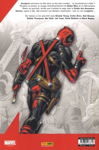 Deadpool rencontre sa fille dans un lieu bien insolite... se souviendra-t-il d'elle ? Pendant ce temps, le voyage interdimensionnel de Spider-Man et du Mercenaire Disert se poursuit, tandis que s'achève la saga avec la Guilde des Assassins. Domino, quant à elle, doit prendre une décision importante : tuer ou non Longshot... De l'action à n'en plus finir avec Skottie young, Cullen Bunn, Gail Simone, Robbie Thompson, Nic Klein, Jim Towe, David Baldeon et Mark Bagley.