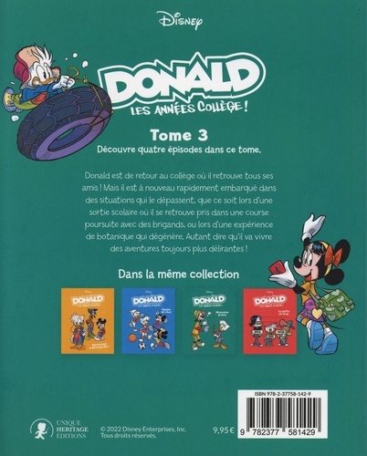 Donald est de retour au collège où il retrouve tous ses amis ! Mais il est à nouveau rapidement embarqué dans des situations qui le dépassent, que ce soit lors d'une sortie scolaire où il se retrouve pris dans une course poursuite avec des brigands, ou lors d'une expérience de botanique qui dégénère. Autant dire qu'il va vivre des aventures toujours plus délirantes !