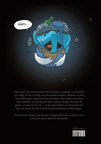 Alors qu'il se promène joyeusement dans la campagne, notre héros voit surgir de terre Nidji, une charmante créature affublée de deux bras robotiques vaguement psychotiques. Mais Nidji vient d'un autre monde, un monde qui tolère mal les voyages de loisir du genre "je viens voir le ciel..." et nos deux héros se retrouvent vite pris en chasse par des autorités particulièrement folkloriques. Une histoire épique aux accents mangas pleine de surprises où se joue, bien sûr, la destinée du monde.