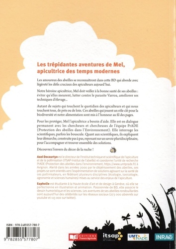 Les amoureux des abeilles se reconnaîtront dans cette BD qui aborde avec légèreté les défis cruciaux des apiculteurs aujourd'hui. Notre héroïne apicultrice, Mel doit veiller à la bonne santé de ses abeilles éviter qu'elles meurent, lutter contre le parasite Varroa, améliorer ses techniques d'élevage... Autant de sujets qui touchent le quotidien des apiculteurs et qui nous touchent tous, de près ou de loin. Ces abeilles qui jouent un rôle clé pour la biodiversité et notre alimentation sont mis à l'honneur au fil des pages. Pour les protéger, Mel l'apicultrice a besoin d'aide. Elle est en dialogue permanent avec les chercheurs et chercheuses de l'équipe PrADE (Protection des abeilles dans l'Environnement). Elle interroge les scientifiques, parfois les bouscule. Quant aux scientifiques, ils expliquent leur démarche, construite pas à pas, reposant sur un savoir pluridisciplinaire, pour l'accompagner et trouver ensemble des solutions. Découvrez l'envers du décorde la ruche !