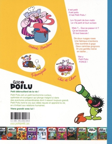 Il est petit, Il est poilu, C'est Petit Poilu ! Le v'là parti de bon matin, Le v'là pa parti et tout va bien. Mais ? ... Que se passe-t-il ? Ca se bouscule, Et tout bascule ! De doux nuages roses, Une fabrique à bonbons, Des sucreries à gogo, Deux caniches grognons, Et une gentille mémé en tablier... Vas-y, Petit Poilu, FONCE ! Petit débrouillard de la vie ! Petit Poilu est un petit bonhomme curieux, optimiste et courageux qui plonge malgré lui dans des aventures extraordinaires dont il ressort toujours grandi, Petit Poilu tord le cou aux idées reçues et apprend la vie, en s'initiant aux relations humaines. Viens grandir avec lui !