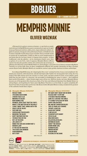 "Elle jouait de la guitare comme un homme", ce qui était un compliment de la part de Big Bill Broonzy qui en connaissait un rayon sur le sujet ! Un jeu parfaitement maîtrisé, solide, précis, impeccablement rythmé, cinglant et costaud, à l'image de cette petite bonne femme, véritable force de la nature à laquelle il valait mieux ne pas se frotter. Dans un monde raciste et sexiste dur et impitoyable, il fallait en effet un sacré tempérament et une bonne dose de cran pour réussir à s'imposer dans un genre-le blues traditionnel, celui des ghettos-où les chanteuses étaient rares. Avec sa guitare et sa voix forte, rude et rugueuse, Memphis Minnie s'affirma comme l'une des plus grandes artistes afro-américaines de son temps, et influença des bluesmen comme Muddy Waters et Jimmy Rogers, sans parler de ses futures consoeurs Big Mama Thornton ou Jo-Ann Kelly. Dans un genre complètement différent des grandes interprètes de blues classique comme Bessie Smith, Memphis Minnie est considérée comme la plus grande chanteuse de blues authentique.