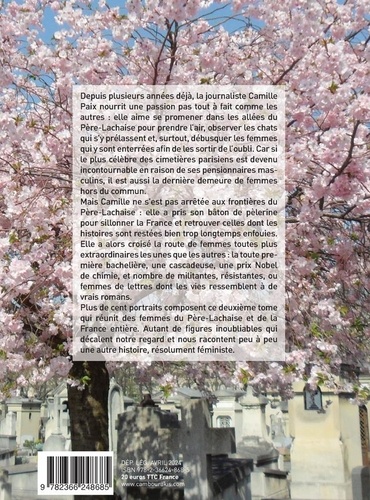 Après le succès de son premier livre de portraits illustrés autour des femmes du Père-Lachaise, Camille Paix a repris son bâton de pèlerine pour déterrer davantage de figures oubliées du cimetière parisien, tout en allant chercher d'autres femmes plus ou moins célèbres et célébrées enterrées aux quatre coins de la France. 100 nouveaux portraits pour découvrir ou redécouvrir celles qui ont fait l'histoire : de la peinture, de la photographie, de la gastronomie, de l'aviation et, bien sûr, des luttes politiques et féministes.