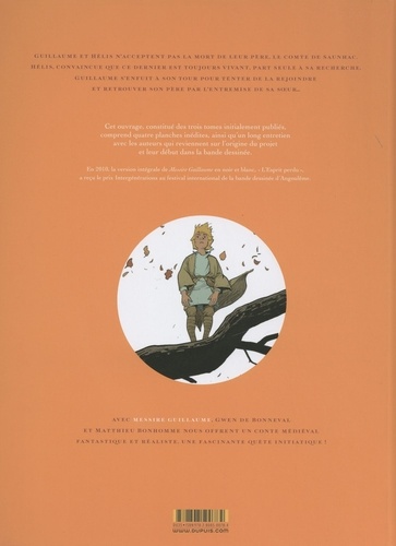 Guillaume de Saunhac n'a jamais pu accepter la mort de son père. Et lorsque sa mère accepte la proposition d'union de messire de Brifaut, il vit mal les perspectives de compagnie de ce beau-père si peu apprécié. Le jour du départ pour leur nouvelle demeure, sa soeur, Hélis, disparaît. Guillaume est déchiré : doit-il suivre sa mère ? Partir à la recherche de sa soeur ? Devait-il la croire lorsqu'elle affirmait que leur père n'était pas mort ? ... Guillaume choisit finalement de retrouver Hélis. Après avoir échappé aux hommes de Brifaut et à de cruels mercenaires, Guillaume fait la rencontre inattendue d'un chevalier solitaire et bienveillant qui accepte de l'aider : Brabançon. Au fil des jours, Guillaume se découvrira des aptitudes étonnantes. Tout au long du voyage apparaîtront des présages qui l'encourageront à persévérer. De plus en plus étranges, de plus en plus difficiles à croire. Avec Messire Guillaume, Gwen de Bonneval et Matthieu Bonhomme nous offrent un conte médiéval teinté de fantastique et de psychanalyse à redécouvrir absolument !