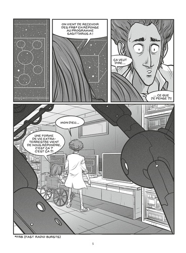 " La découverte du siècle est un accident ! " Condamné à passer le reste de ses jours en fauteuil roulant, le jeune Josh s'évade à travers les merveilles de la science. Et avec son ami Jorgen, scientifique illuminé du quartier, ils ont une passion : observer les étoiles en quête d'une forme de vie extraterrestre. Jusqu'au jour où l'impensable se produit lorsqu'ils captent la réponse à un signal émis par Jorgen 20 ans auparavant. C'est la découverte du siècle : les aliens existent donc bel et bien ! Reste à savoir comment l'oncle de Josh, sheriff irascible du comté, sa femme qui ne jure que par les miracles de Jésus et le reste de leur petite communauté au moins aussi ouverte d'esprit vont accueillir la nouvelle. Alors que le signal se fait de plus en plus intense, une collision semble inéluctable entre eux et cette forme de vie venue d'ailleurs. Une collision qui va changer la vie de Josh à tout jamais. David Boriau et Nuno Plati revisitent le thème de la rencontre du troisième type et nous racontent comment le destin d'un jeune garçon handicapé va être bouleversé par sa rencontre avec un ailleurs. Un récit initiatique et touchant sur la nécessité de croire en ses rêves malgré le poids des liens communautaires.