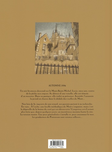 Automne 1936. Un soir, alors que et la brume vient de tomber sur le Mont-Saint-Michel, la petite Lucie est témoin d'un meurtre ! Terrorisée, la fillette a un geste de recul qui trahit sa présence et, aussitôt, se retrouve prise en chasse par le meurtrier. Dès l'aube, tous les habitants se mettent à fouiller la baie et le Mont à la recherche de Lucie, portée disparue, mais c'est le corps sans vie de la bonne du curé qui est retrouvé ! La panique est d'autant plus grande que depuis quelques jours, un mystérieux inconnu hante le site. Dans une atmosphère étouffante, tout le monde en vient à se méfier de tout le monde. Et pour couronner le tout, les gendarmes de Pontorson, la commune de la baie, sont retenus ailleurs...Dans le cadre de leur partenariat, les éditions Glénat et les éditions du Patrimoine s'aventurent en bande dessinée sur le célébrissime Mont-Saint-Michel, huis clos idéal pour un polar digne des meilleurs romans d'Agatha Christie !