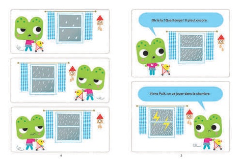 Aujourd'hui il pleut. Bien que petite grenouille, Mia s'ennuie. Accompagnée de son fidèle ami, Puik, son canard en mousse, ils vont trouver de nouveaux jeux à partir de petits rien et de pas grand chose. Quand l'inventivité n'a pas de limite, le plaisir est d'autant plus grand !