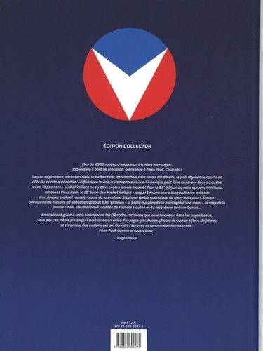 Plus de 4000 mètres d'ascension à travers les nuages ; 156 virages à bord de précipice : bienvenue à Pikes Peak, Colorado ! Depuis sa première édition en 1916, le "Pikes Peak International Hill Climb" est devenu la légendaire course de côte du monde automobile : un flirt avec le vide qui attire tout ce que l'Amérique peut faire rouler sur deux ou quatre roues. Et pourtant... Michel Vaillant ne s'y était encore jamais mesuré ! Pour la 99e édition de cette épreuve mythique, retrouvez Pikes Peak, le 10e tome de "Michel Vaillant - saison 2" dans une édition collector enrichie d'un dossier exclusif : sous la plume du journaliste Stephane Barbé, spécialiste du sport auto de l'Equipe, découvrez les exploits de Sebastien Loeb et d'Ari Vatanen - le pilote qui dompta la montagne d'une main -, la saga de la famille Unser, les interviews inédites de Michèle Mouton et du recordman Romain Dumas... En scannant grâce à votre smartphone les QR codes tricolores que vous trouverez dans les pages bonus, vous pourrez même prolonger l'expérience en vidéo. Paysage grandioses, photos de course à flanc de falaise et chronique des exploits qui ont donné à l'épreuve sa renommé internationale : Pikes Peak comme si vous y étiez !
