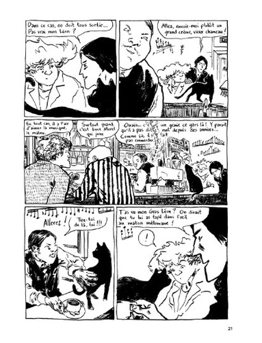 Le jour où grand Léon, doux géant un peu gauche, trouve une jolie jeune fille aux yeux de chat dans son lit, Mine, il se demande bien comment elle a pu arriver là. Il se demande bien aussi où est passée la petite chatte noire au regard brillant qu’il a recueillie et qui lui tient si joliment compagnie ? Une galerie de personnages hauts en couleurs accompagnent notre féline héroïne, tout le long de ce conte étrange et fantastique : Gaspar, l’ami de Léon, Pauvre Pierre, le « père » de Mine, le pianiste virtuose Morel, qui ne parle jamais mais qui joue comme un Dieu.
