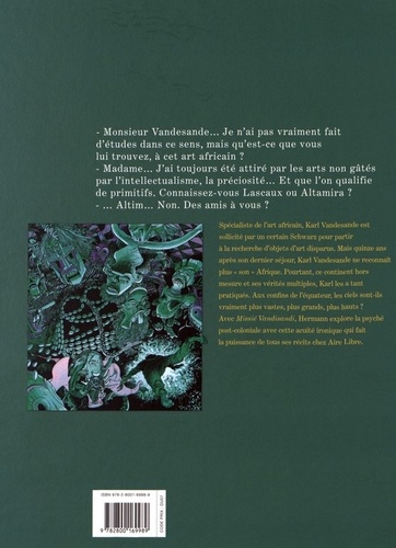Spécialiste de l'art africain, Karl Vandesande est sollicité par un certain Schwarz pour partir à la recherche d'objets d'art disparus. Mais quinze ans après son dernier séjour, Karl Vandesande ne reconnaît plus " son " Afrique. Pourtant, ce continent hors mesure et ses vérités multiples, Karl les a tant pratiqués. Aux confins de l'équateur, les ciels sont-ils vraiment plus vastes, plus grands, plus hauts ? Avec Missié Vandisandi, Hermann explore la psyché post-coloniale avec cette acuité ironique qui fait la puissance de tous ses récits chez Aire Libre.