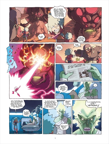 Dans Mission Astérovore, 2e tome d’Axel Rock, par Moustey et Loyvet, Axel, Dino et Teddy sont prêts à affronter leur destin d’aventuriers de l’espace après avoir reçu l’enseignement de combat musical de l’immense Mike Gatling. Ce 2e épisode d’Axel Rock plonge trois jeunes rockeurs dans une course-poursuite effrénée. Leur mission : récupérer le saldafasse – une bestiole extrêmement dangereuse dont les ondes zygomatiques peuvent faire exploser une planète entière – tombé entre les mains d’un redoutable pirate de l’espace, le terrible capitaine Krik. Axel Rock, un 2e volet dans la veine du 1er : scénario hilarant, dialogues truculents, mise en scène ultra-dynamique ; une bande dessinée d’humour très inspirée par le shônen.