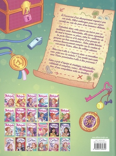 A l'occasion d'un championnat organisé par son école, Chloé embarque pour un séjour sportif au sein d'un immense château. Entraînée dans cette course au trésor par sa meilleure amie Fatoumata, elle aura cependant du mal à trouver sa place, entre les railleries de la peste Anissa et le mépris d'un groupe de garçons un brin autoritaires. Notre petite héroïne pourra heureusement compter sur le soutien de son voisin Victor, élève du collège adverse. Réussira-t-elle à s'imposer dans ce marathon sans pitié vers la victoire ? Son amitié naissante avec Victor parviendra-t-elle à être préservée ? Entre esprit d'équipe et stratégies individuelles, solidarité et complots, suivez Mistinguette lors d'une compétition riche en émotion !