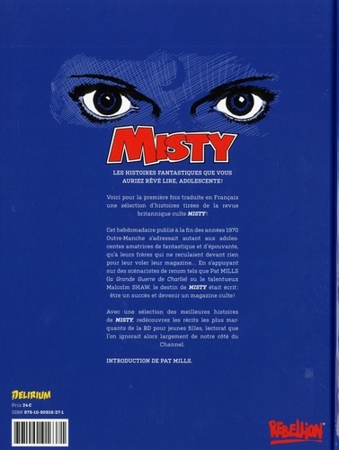 Voici pour la première fois traduite en Français une sélection d'histoires tirées de la revue britannique culte Misty ! Cet hebdomadaire publié à la fin des années 1970 Outre-Manche s'adressait autant aux adolescentes amatrices de fantastique et d'épouvante, qu'a leurs frères qui ne reculaient devant rien pour leur voler leur magazine... En s'appuyant sur des scénaristes de renom tels que Pat Mills (la Grande Guerre de Charlie) ou le talentueux Malcolm Shaw, le destin de Misty était écrit : être un succès et devenir un magazine culte ! Avec une sélection des meilleures histoires de Misty, redécouvrez les récits les plus marquants de la BD pour jeunes filles, lectorat que l'on ignorait alors largement de notre côté du Channel.
