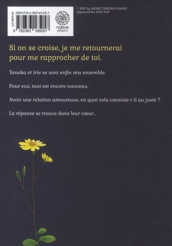 Si on se croise, je me retournerai pour me rapprocher de toi. Tannisa et Irie se sont enfin mis ensemble. Pour eux, tout est encore nouveau. Avoir une relation amoureuse, en quoi cela consiste-t-il au juste ? La réponse se trouve dans leur coeur...
