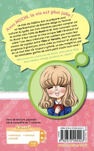 Le club de théâtre doit se préparer pour sa représentation de Blanche-Neige au festival culturel du lycée. Les trois membres peuvent compter sur le soutien sans faille de Mochi et Al. Mais comment vont-ils réussir à leur sauver la mise lorsque Saki s'évanouit sur scène ? Les deux créatures n'en oublient pas moins leur mission de cupidon entre Yûka et Yamato, dont la relation progresse à grand pas, entre virée au matsuri et séjour au ski. Le tout bien sûr toujours rythmé, un peu malgré lui, par les inimitables gaffes de notre petit mochi tout rond ! Découvrez les aventures de Mochi, dans cette série élue meilleur manga jeunesse au Japon !