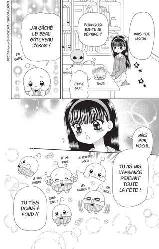 Avec Mochi, la vie est plus jolie ! Mochi, petit être tout rond qui vient du sous-sol de la Terre, est sauvé par Yûka, une jeune collégienne à la gentillesse débordante. Touché par son geste, Mochi décide de rester à ses côtés. Il s'installe alors dans le grenier, où il va cohabiter avec Al, une extraterrestre ingénieuse qui vit aussi ici en attendant de finir de réparer son vaisseau spatial. Commence alors leur rocambolesque vie quotidienne, où Mochi découvre le monde de la surface, entre petites aventures chaotiques et nouvelles grandes amitiés ! Découvrez les aventures de Mochi, dans cette série élue meilleur manga jeunesse au Japon !