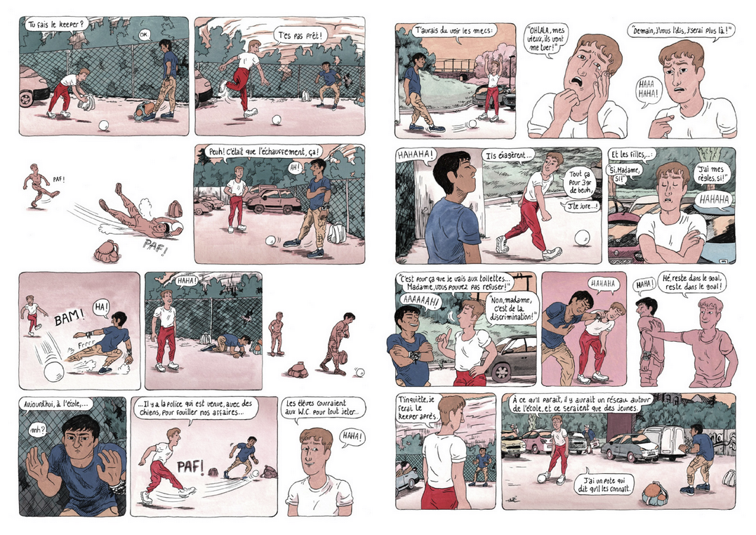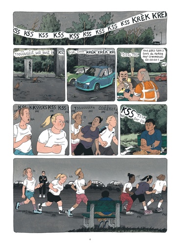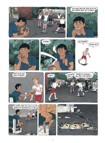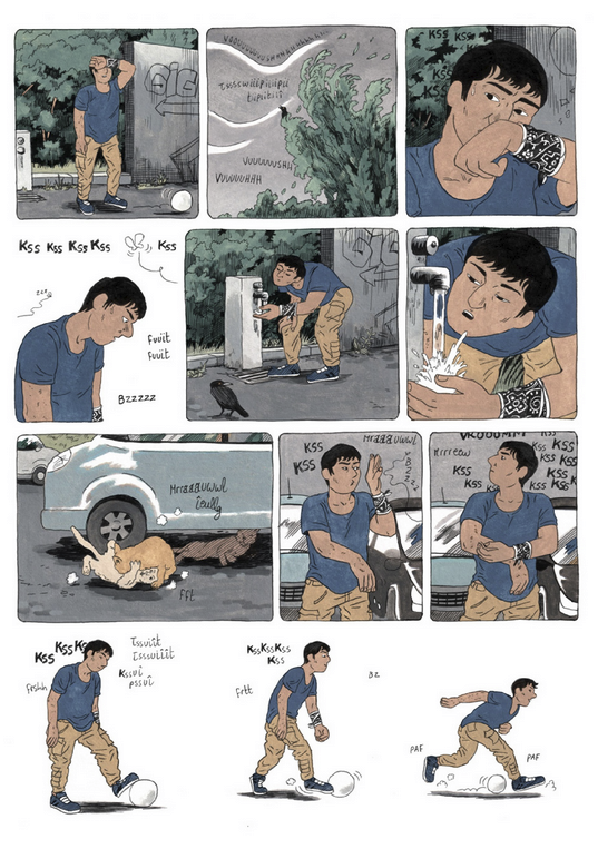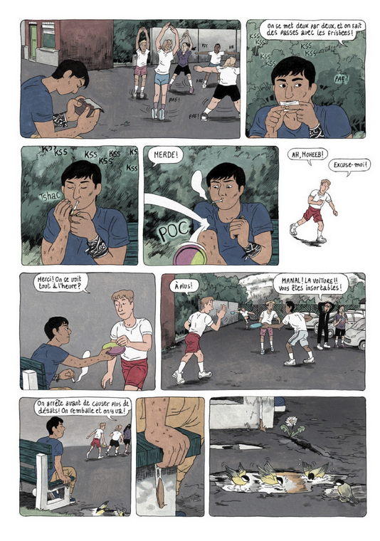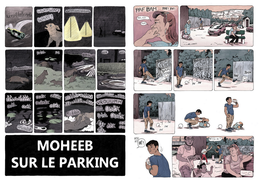 Un bout de parking, pas loin de Bruxelles. C'est là que Moheeb, un ado afghan réfugié, vit sa vie sur un banc. Un quotidien précaire, mais égayé par les parties de foot avec son pote Hugo et les discussions avec Qaïs, migrant comme lui et tombé amoureux d'une jeune Belge. Soutenu par Souad, membre d'une association, ainsi que par la maman d'Hugo, un ado qui lui complique bien la vie, Moheeb le taiseux semble profiter des longues journées d'été, malgré les papiers qui n'arrivent pas, les agressions et les menaces de la police. A moins qu'un feu secret ne le consume de l'intérieur. Car si on ignore déjà ce qu'il y a dans la tête d'un ado avec un toit et une famille, comment savoir ce qui se passe dans celle de Moheeb ? Après Merel , Clara Lodewick explore le quotidien et la santé mentale des réfugiés mineurs isolés, tout en composant une splendide galerie de personnages.
