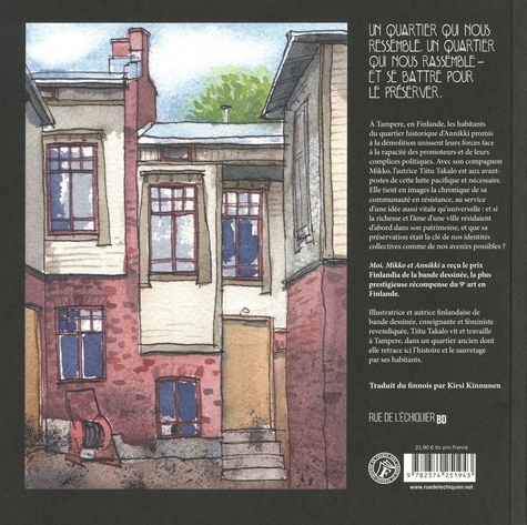 A Tampere, en Finlande, les habitants du quartier historique d'Annikki promis à la démolition unissent leurs forces face à la rapacité des promoteurs et de leurs complices politiques. Avec son compagnon Mikko, l'autrice Tiitu Takalo est aux avant-postes de cette lutte pacifique et nécessaire. Elle tient en images la chronique de sa communauté en résistance, au service d'une idée aussi vitale qu'universelle : et si la richesse et l'âme d'une ville résidaient d'abord dans son patrimoine, et que sa préservation était la clé de nos identités collectives comme de nos avenirs possibles ?
